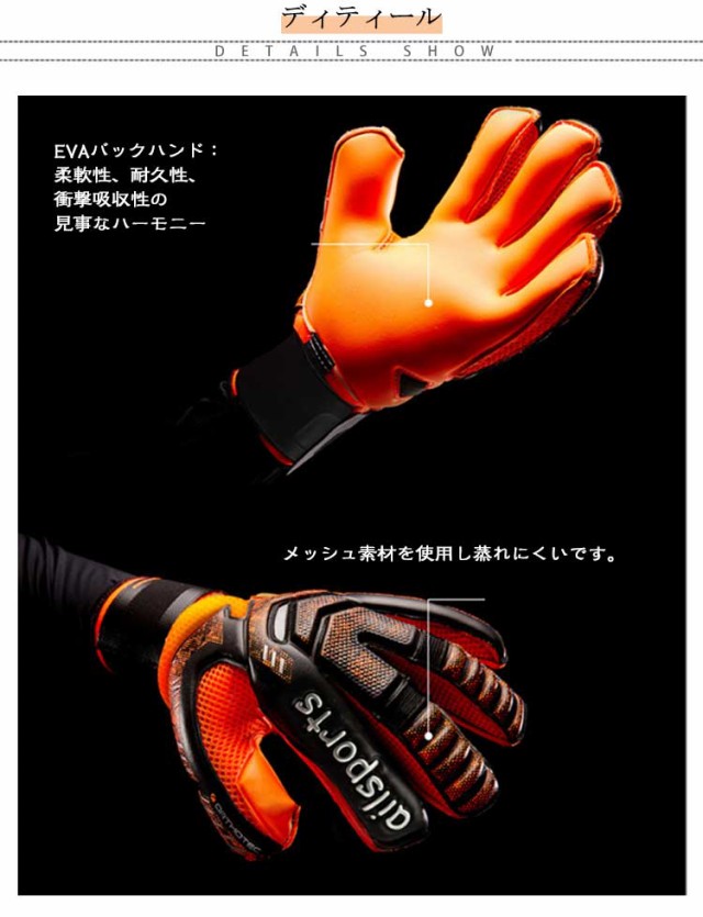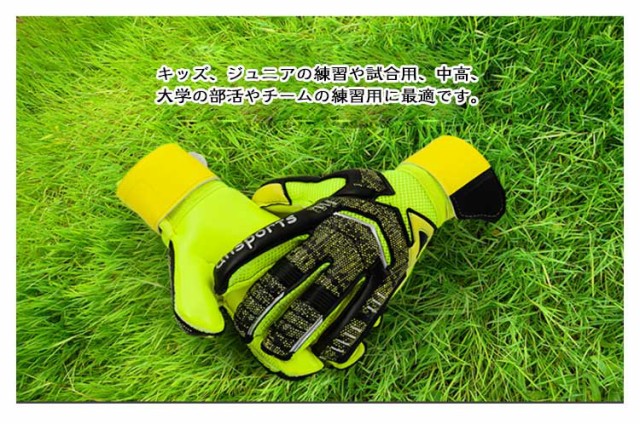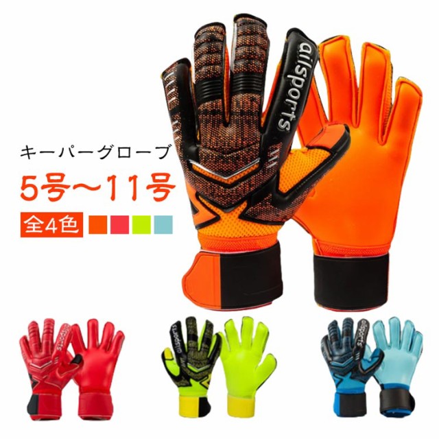 | 全4色 5号?11号 キーパーグローブ 親指の根元に切れ込みが入ったことにより稼働力アップになります。 キッズ、ジュニアの練習や試合用、中高、大学の部活やチームの練習用に最適です。 EVAバックハンド:柔軟性、耐久性、衝撃吸収性の見事なハーモニー メッシュ素材を使用し蒸れにくいです。 手首に360度巻けるロングベルト採用します。 コスパ抜群サッカー、フットサル ゴールキーパー用品です。 | |