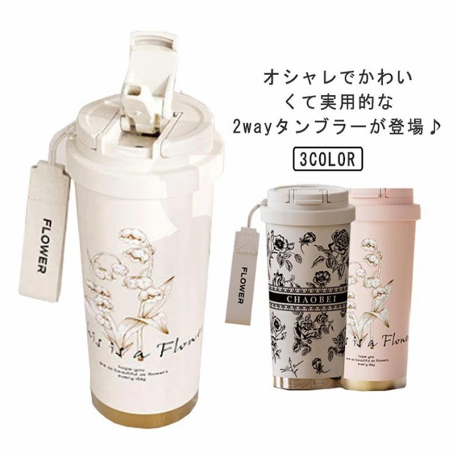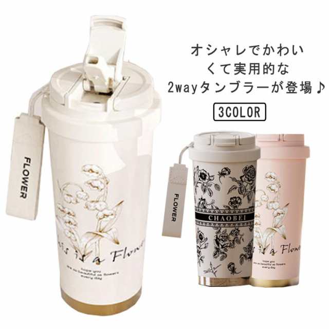 保温 茶こし付き マグボトル タンブラー 550ml 直飲み 水筒 セラミックコーティング 保冷 タンブラー 漏れ防止 魔法瓶 蓋付き 真空断熱 大容量 持ち運び ストロー付き 炭酸 コーヒータンブラー ストラップ付 花柄 おしゃれ 2way