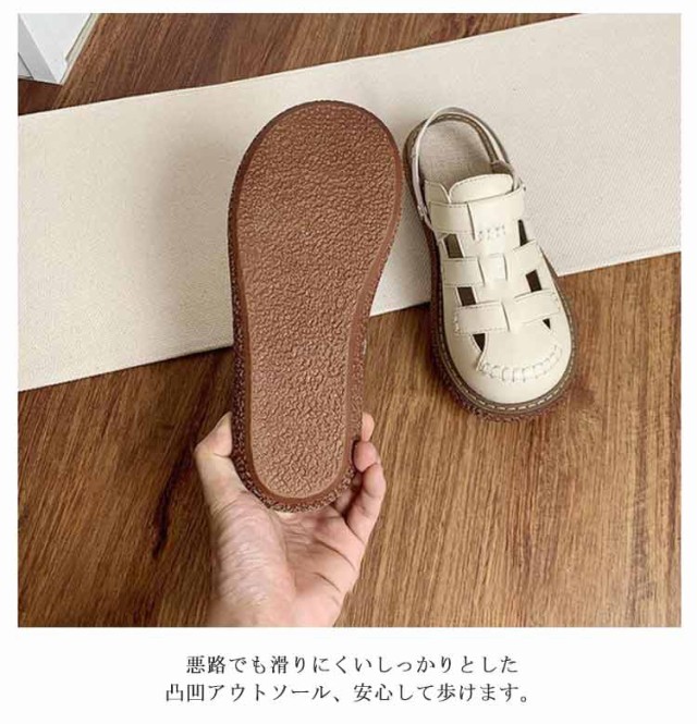 | ベルトをかかとにつけても履ける2wayグルカサンダル。 通気性抜群でつま先を覆う形なので、指が出ず安心感のある履き心地のグルカサンダル。 今大人気の編み込み仕様、さっと履きやすいのが嬉しいポイント。 クッション性のある綿麻素材のインソール、蒸れずに、汗もしっかり吸収でき、いつもサラサラ快適で変な匂いがせずに、素足でも快適に履いていただけます。 アンクルストラップは一部ゴムになっているので、脱ぎ履きしやすく足にしっかりフィットしますよ! 約3.5cmの厚底、安定感があるだけでなく、程よい高さで美脚効果もプラス。ヒールが苦手な方にぜひお勧めです。 悪路でも滑りにくいしっかりとした凸凹アウトソール、安心して歩けます。 | |