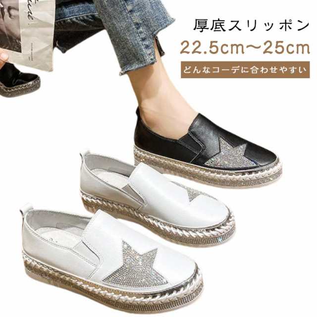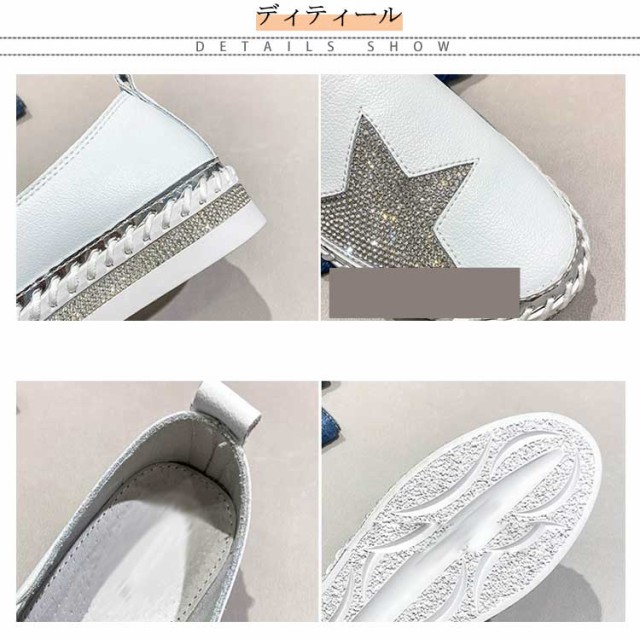 星柄 3cm 履きやすい レディース キラキラ 痛くない サイドゴム付き ラインストーン 軽量 ぺたんこ シューズ フラットシューズ 厚底スリッポン 厚底 紐なし 厚底スリッポン 疲れにくい 蒸れにくい ローカット 美脚 カジュアル 星柄 通気性 立ち仕事 旅行 通学 無地