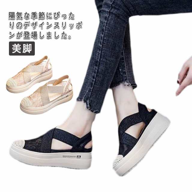厚底靴 レディース スリッポン 厚底 メッシュ 厚底シューズ サンダル 上品 大人カジュアル ラメ 透け おしゃれ 履きやすい 歩きやすい 美脚 スポサン 厚底 シンプル 婦人靴 通気 サンダルスニーカー 韓国風 美脚 疲れない スニーカー