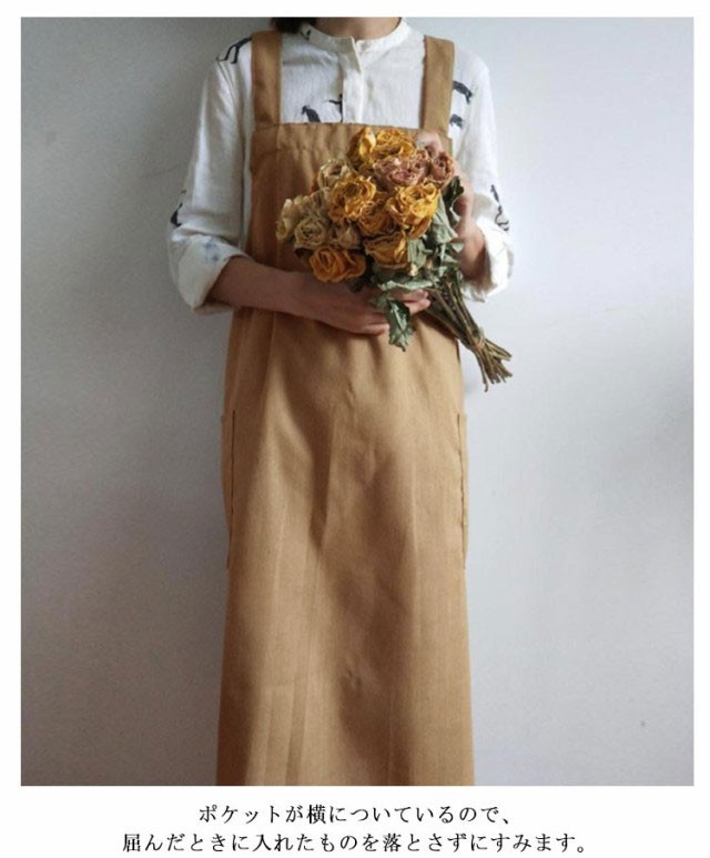 カフェエプロン レディース 大きいサイズ ワークエプロン ワンピース 北欧風 綿麻エプロン リネン ロングエプロン おしゃれ ワンピースエプロン 花屋 お尻が隠れる ポケット付き プレゼント シンプル 実用的 保育士 エプロン