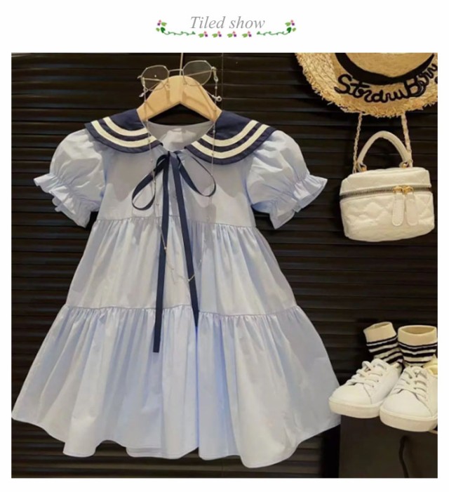 子供ワンピース セーラー襟 キッズ マリン風 ワンピース 半袖 ワンピース ワンピース 子供ドレス 女の子 ワンピース 夏ワンピース 子供 フレアワンピース ベビー ワンピース 子供服 フォーマル キッズ 演奏会 発表会 ワンピース