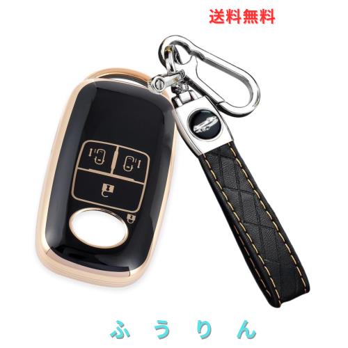 キーケース適合トヨタ ライズ ダイハツ ロッキー 新型タフト キー カバー ルーミー キーホルダー (両側スライドドア, ブラック)