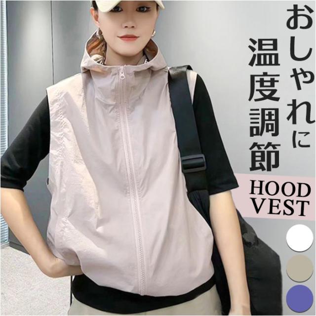 軽量 ベスト 春夏 レディース 通販 レディースベスト春夏物 薄手 フード付きレディース フード付き 前開きベスト トップス 重ね着 レイヤード 羽織り 羽織りもの シンプル 無地