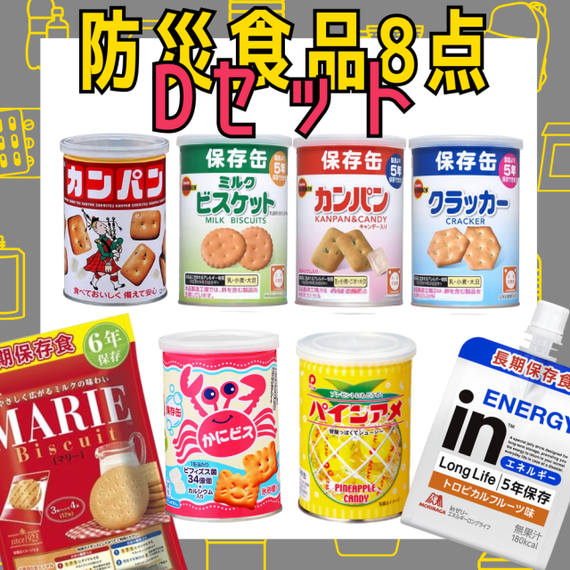 防災食 非常食 8点セット 防災食セットD 三立製菓 乾パン カニビス ブルボン缶 3種 パイン飴 inゼリー マリー 長期保存 防災食 非常食バラエティセット