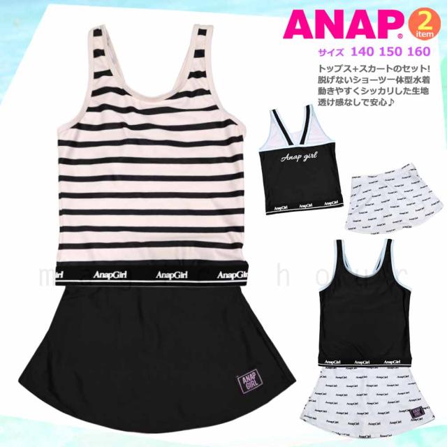 ◆ ANAP アナップ キッズ ジュニア ガールズ セパレートタイプ タンキニ 水着 2点 セット キャミソール スカート ロゴ 柄 女の子 ジュニア スイムウェア◆