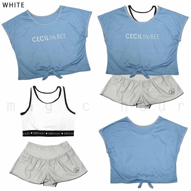 ◆ CECIL McBEE セシルマクビー キッズ ジュニア ガールズ セパレートタイプ タンキニ 水着 ハーフトップ Tシャツ付き 3点 セット ロゴ 女の子 ジュニア スイムウェア◆