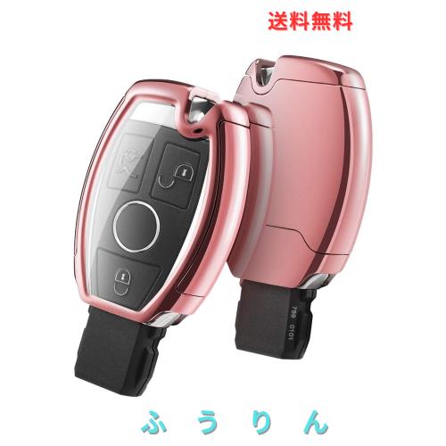 [OATSBASF]自動車用キーカバーはメルセデスベンツに適している TPU 360度フルプロテクション 傷 防止 ベンツ アクセサリー メルセデス A B C E クラス CLA GLA GLC GLE 21-ローズゴールド