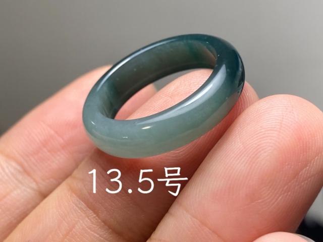 L11-215 氷糯種 紺色 グレー 13.5号 天然グアテマラ産 A貨 本翡翠 くりぬき リング