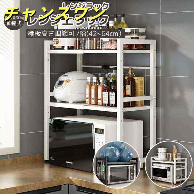 レンジ上ラック レンジラック 伸縮式 2段式 電子レンジラック 棚板高さ調節可 オーブンレンジラック キッチン収納ラック おしゃれ 耐荷重30kg