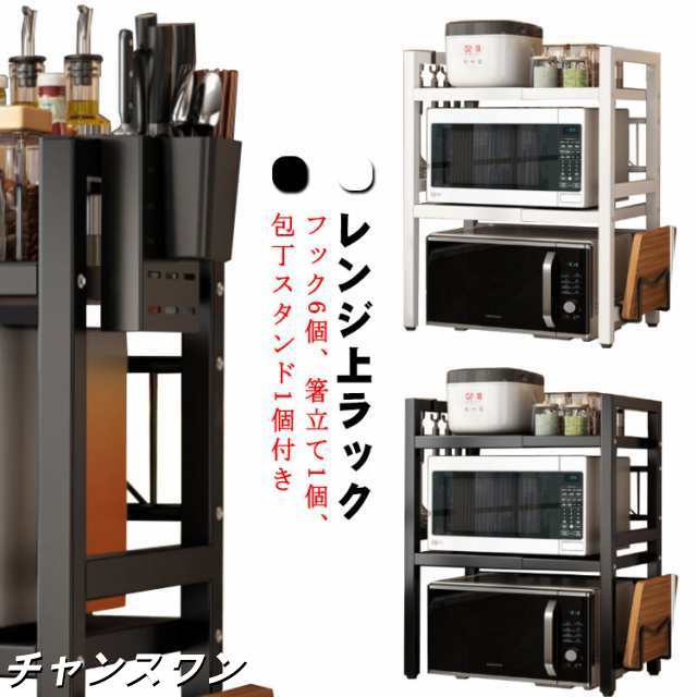 ラック 伸縮 レンジラック キッチンラック レンジ上 レンジ棚 3段 キッチン収納 おしゃれ シンプル 北欧 スリム トースター ラック 電子レンジ台 キッチンカウンター上収納 キッチン用品 台所収納 伸縮キッチンラック 2段タイプ ホワイト ブラック