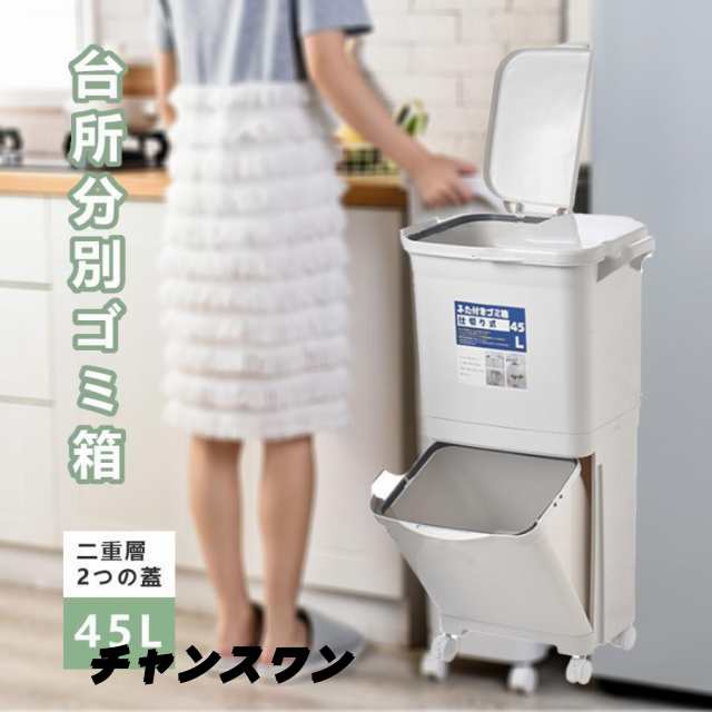 ゴミ箱 分別 ゴミ箱 45リットル袋可 スリム 縦型 2段 フロントオープン 足踏み 分別 ダストボックス 積み重ね キッチン スリム シンプル 大容量 ふた付き 縦型