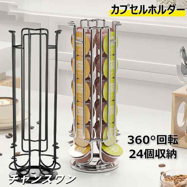 カプセルホルダー 24個収納 ドルチェグスト用カプセルホルダー 回転式スタンド 収納ラック 省スペース 縦型 コーヒーカプセルホルダー コーヒーカプセル 収納 カプセルストレージ 収納スタンド 簡単出し入れ 360°回転 4列×6個 ブラック シルバー