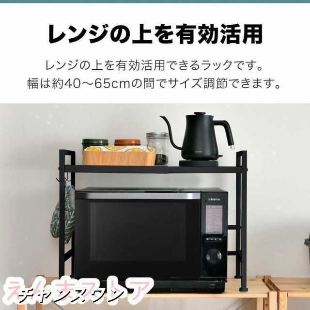 レンジ上ラック キッチン収納 伸縮 幅40-64cm レンジ台 キッチンラック 大型レンジ対応 電子レンジ棚 トースター 省スペース おしゃれ