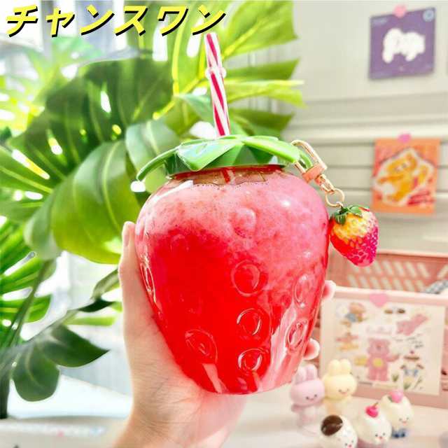 ウォーターボトル かわいい いちご イチゴ ストロベリー ins ストロー付き 1個 【水筒 ドリンク ボトル ストローボトル ウォーターカップ ストローカップ ジュース コーヒー 可愛い カワイイ 女子 女性 学生 SNS インスタ映え】