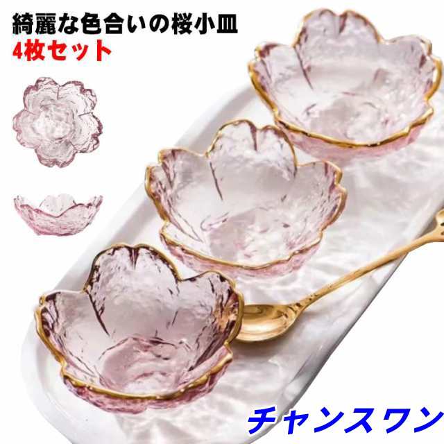 セット 小鉢 業務用 ガラス食器 おしゃれ キレイ デザート ガラスボウル 小鉢 サクラ ガラス 小鉢 食器 和食器 洋食器 飲食店 お皿 桜 かわいい クリア 4枚セット さくら 花柄 四季 ピンク 花見 春 インスタ映え ギフト 小皿