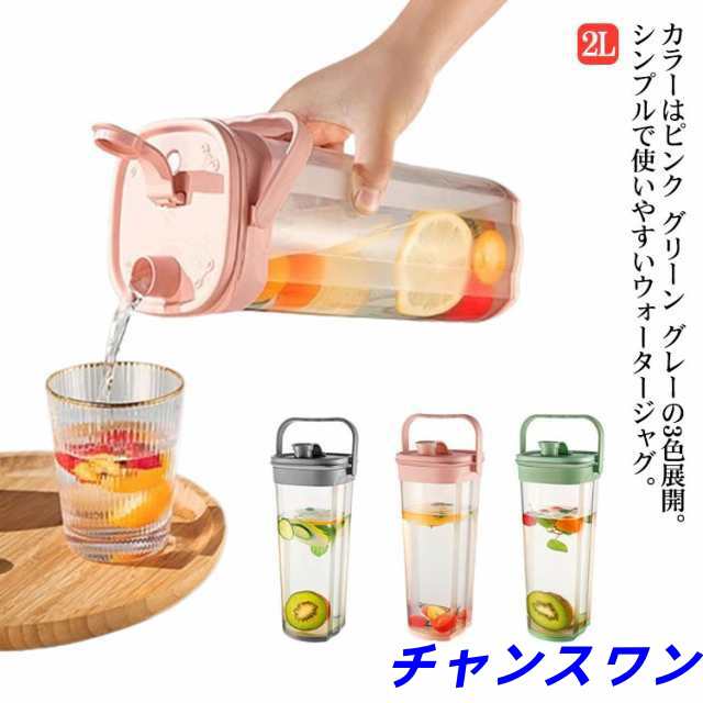 ピッチャー 冷水筒 2L 麦茶ポット 冷水ポット 水差し 耐熱 持ち手つき 横置き タテヨコ兼用 滑り止め ドリンクボトル お茶ボトル お茶入れ 広口 目盛り 洗いやすい プラスチック ピンク グリーン グレー