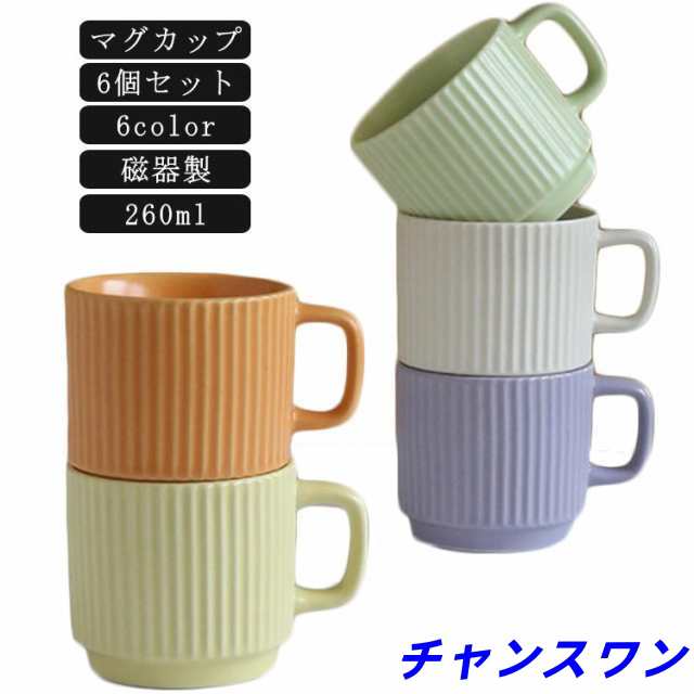 | 【6個セット】【260ml】【マグカップ】【磁器製】【6color】 手に馴染むフォルムと優しい色合いのシンプルなマグカップ。 容量は日常的に使用しやすい260ml。 【おすすめ用途】コーヒー・紅茶・ジュース・お茶 陶器製で電子レンジ・食洗器も対応可能です。 結婚祝いや引越祝い・新築祝い、誕生日プレゼントなどのギフトにおすすめ | |