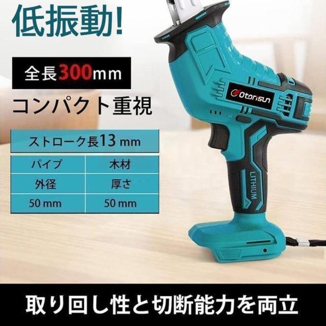 【正規品】2025新品 レシプロソー 充電式 電動ノコギリ 電動のこぎり 小型チェンソー 21V マキタ バッテリー互換対応 高速切断 軽量 女性 工具 ブレード4本付き