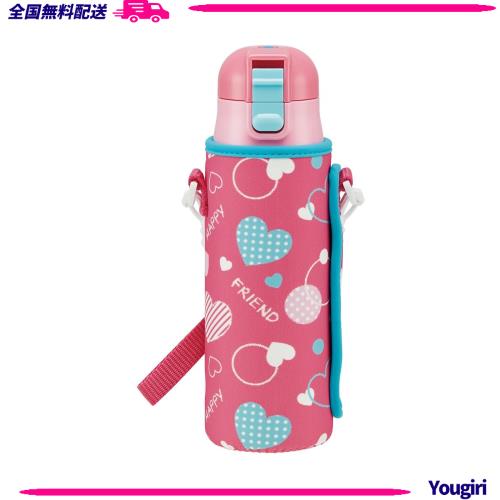 ◆商品名:スケーター(Skater) 直飲み ステンレス 水筒 470ml ボトルカバー付き ハート 水玉 女の子 KSDC4-A