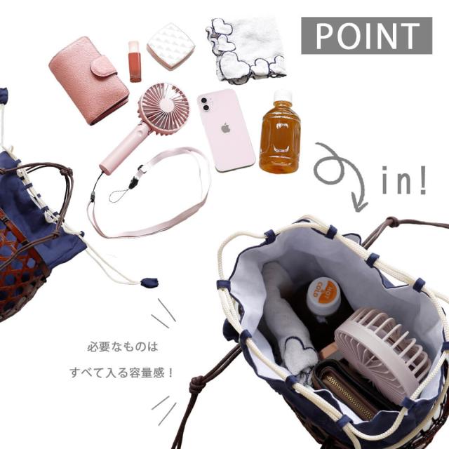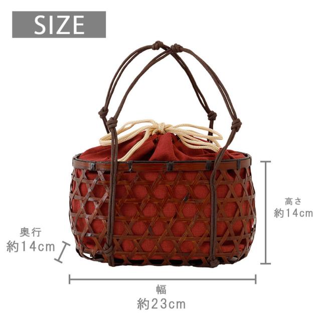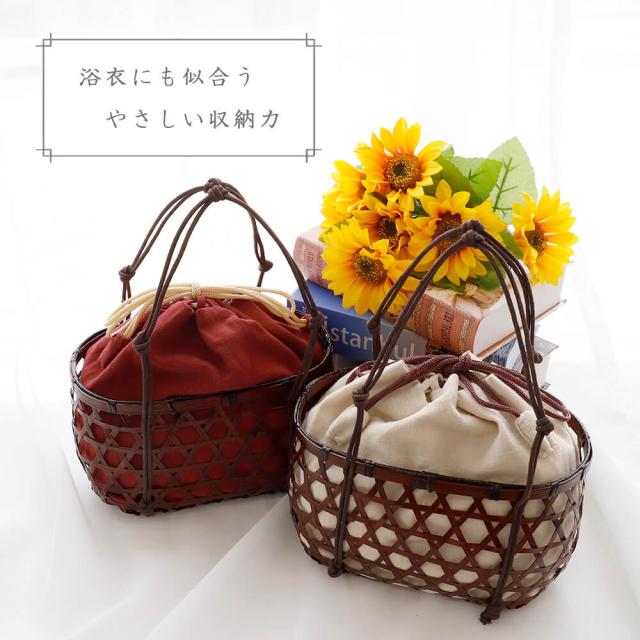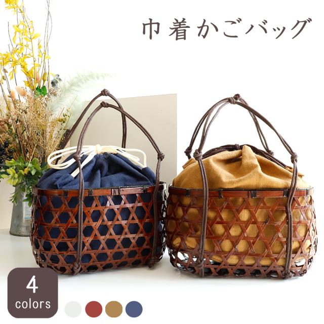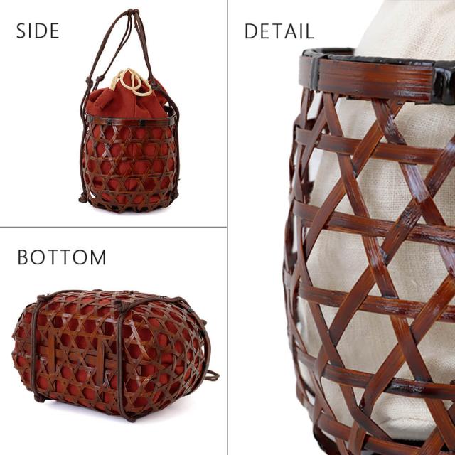 かご:竹巾着:麻100%