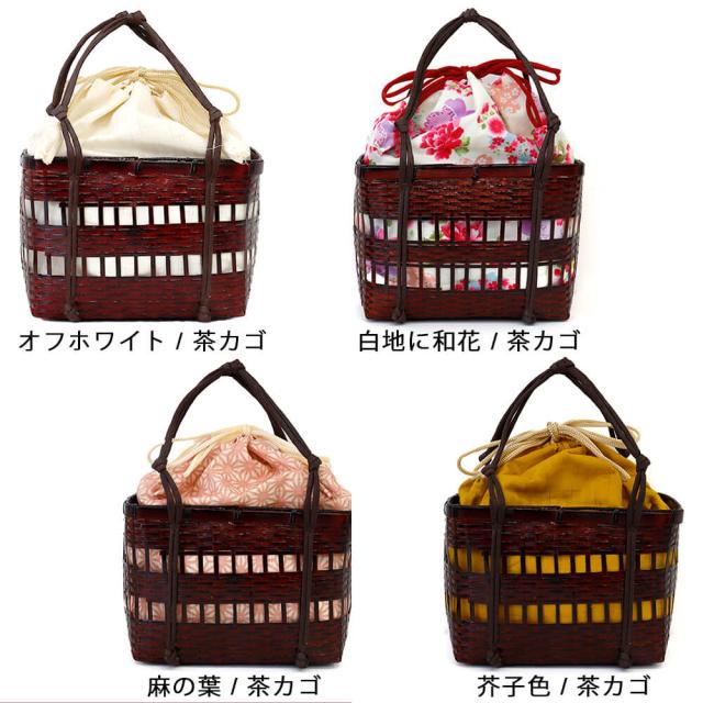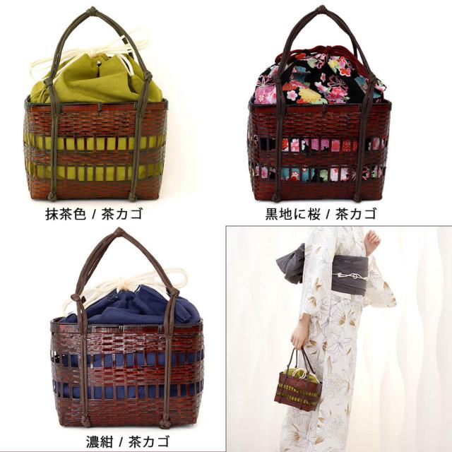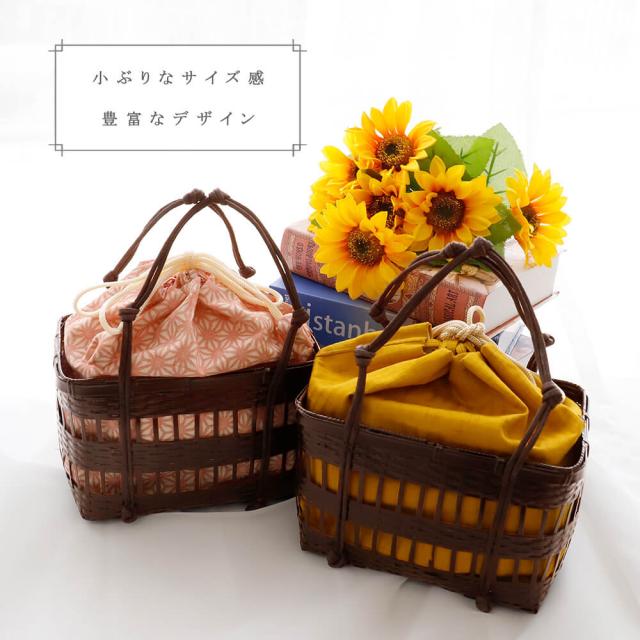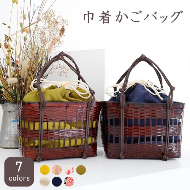 かごバッグ 籠バッグ 巾着 きんちゃく カゴ巾着 かご巾着 浴衣 和装 ベージュ からし 赤 ネイビー おしゃれ 可愛い 和装