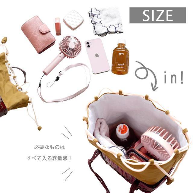 ●巾着の柄がチラ見えするかごバッグのデザインがポイント♪
