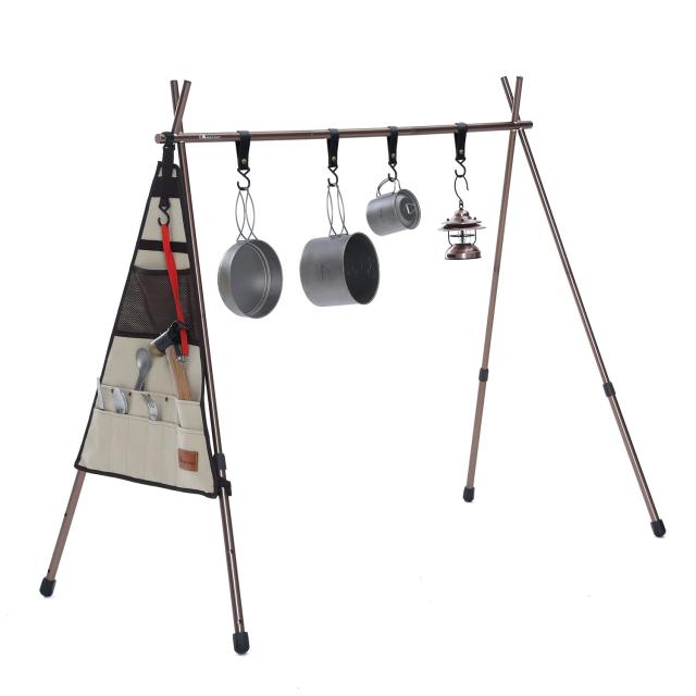 【多場合適用・部品完備】 可動フックが付き、ハンガーラックとして衣服・雨具をかけて、小物を収納するのにとても重宝して、タープや寝袋などをぶら下げて干すのにも快適になります。ランタンハンガー・ランタンスタンドとしてはもちろん、焚き火周りの小物を引掛けておく、薪割のツールを引掛けておくと、火加減の管理などに便利で、調理器具などのキャンプギアを吊るしておけば便利です。室内でも適用、何でも引っ掛ける事で快適になります。