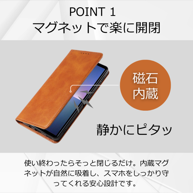 マグネット開閉で使いやすく、横置きスタンドとしても活躍します。