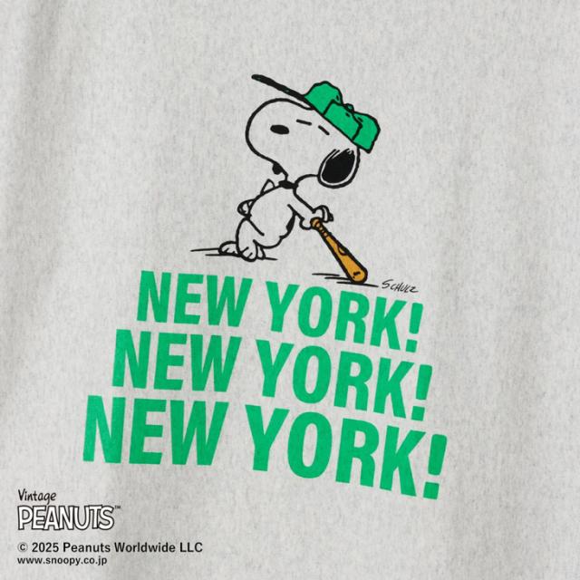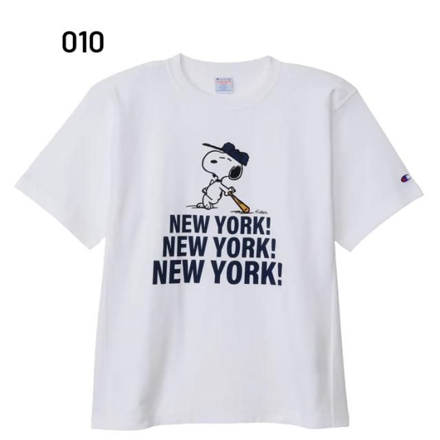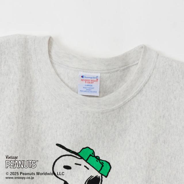 チャンピオン(Champion)から、スヌーピーデザインのリバースウィーブTシャツです。