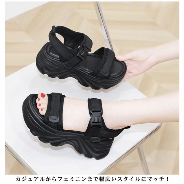 靴 サンダル スポサン サンダル 韓国ファッション 厚底サンダル クッション 5cm ベルクロ 歩きやすい スニーカーサンダル マジックテープ シューズ 厚底 レディース オフィス カジュアル 軽量 滑り止め 美脚 スポーツサンダル おしゃれ アウトドア
