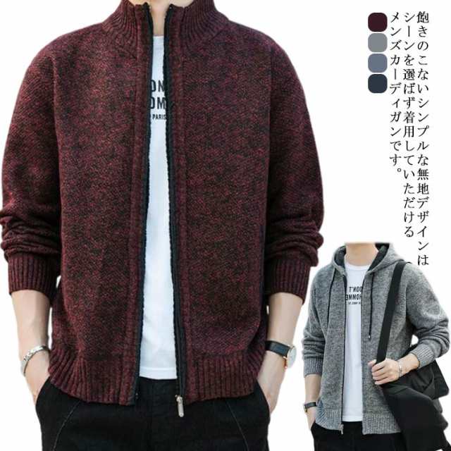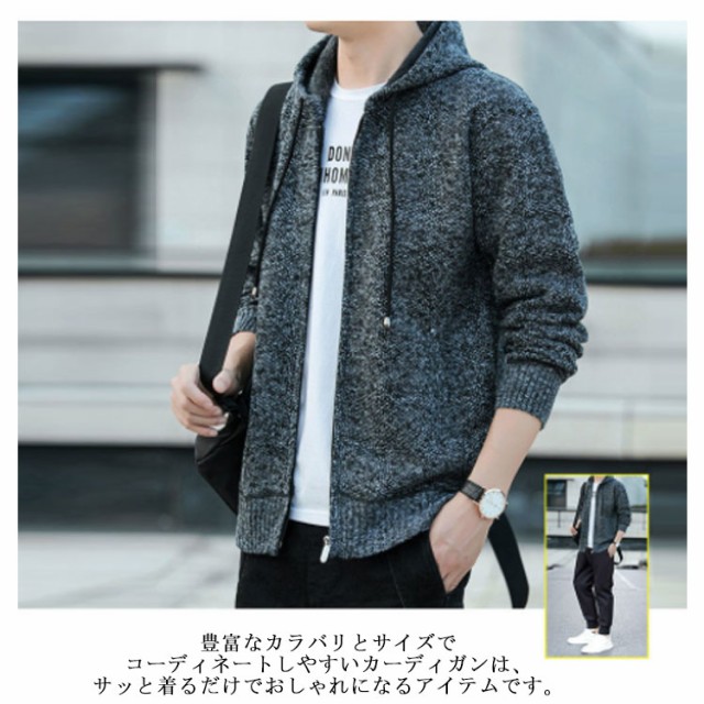 ニットジャケット ニットカーディガン メンズ ジップアップジャケット フード付き 無地 ニット カーディガン ファスナー アウター パーカー カジュアル 秋 冬 大きいサイズ 送料無料 m l xl 2xl 3xl 4xl