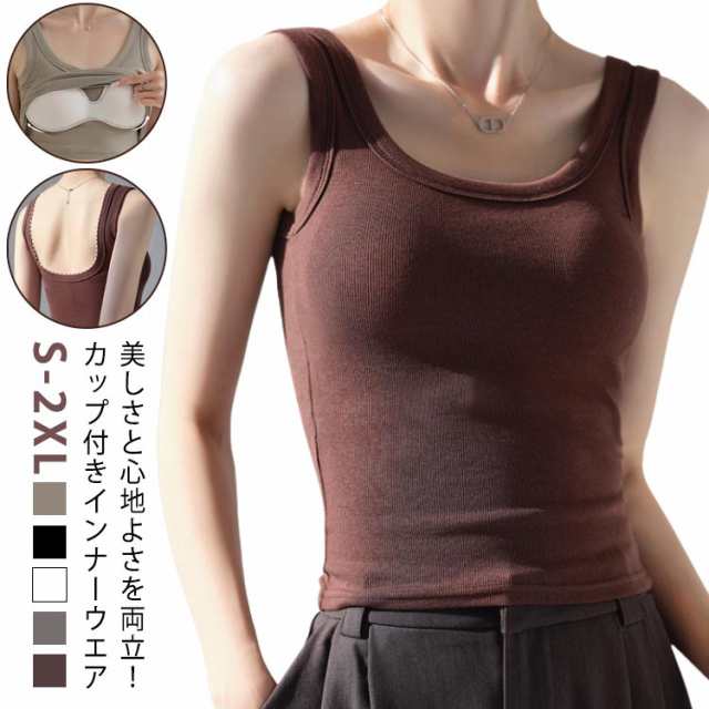 ノースリーブ ノンワイヤー 綿混 ブラジャー コットン混 デコルテ インナー コットン混 ブラキャミ タンクトップ リブ トップス キャミ キャミソール インナーウエア ストレスフリー 小さく見せる 下着 ナイトブラ 昼夜兼用 楽ちん ブラトップ 大きいサイズ カップ付き