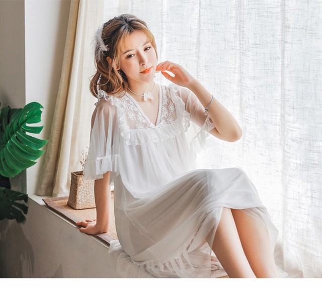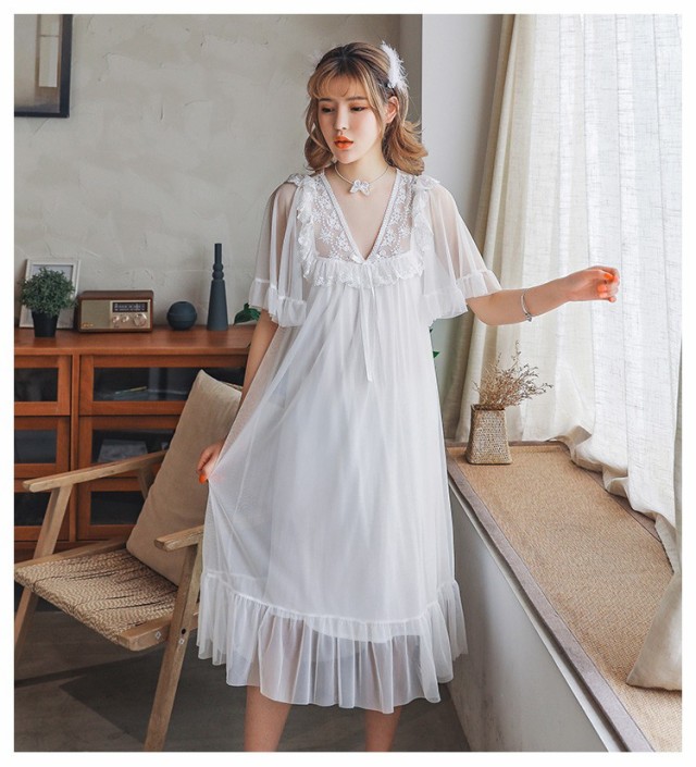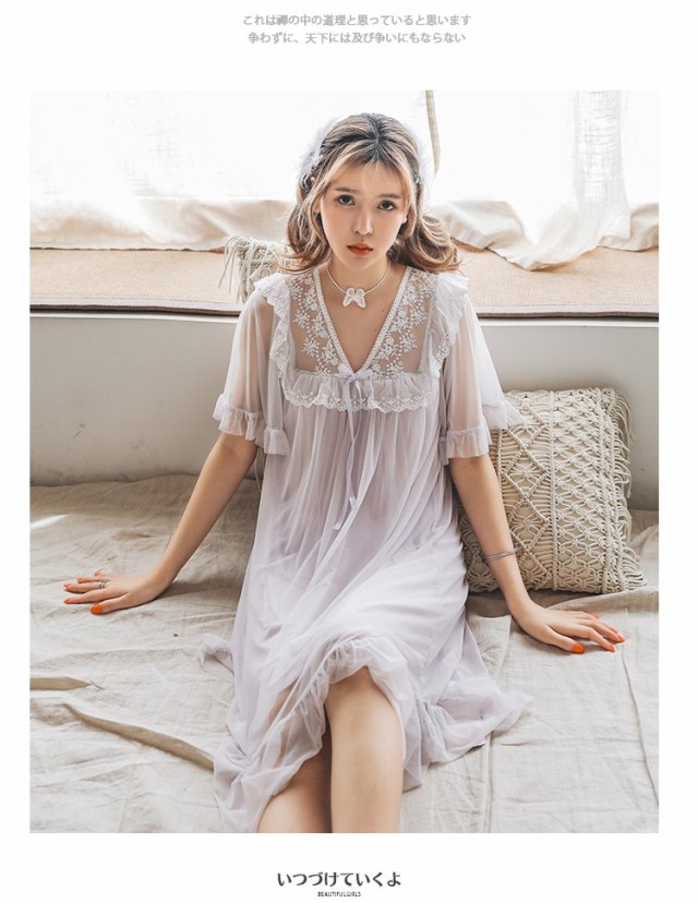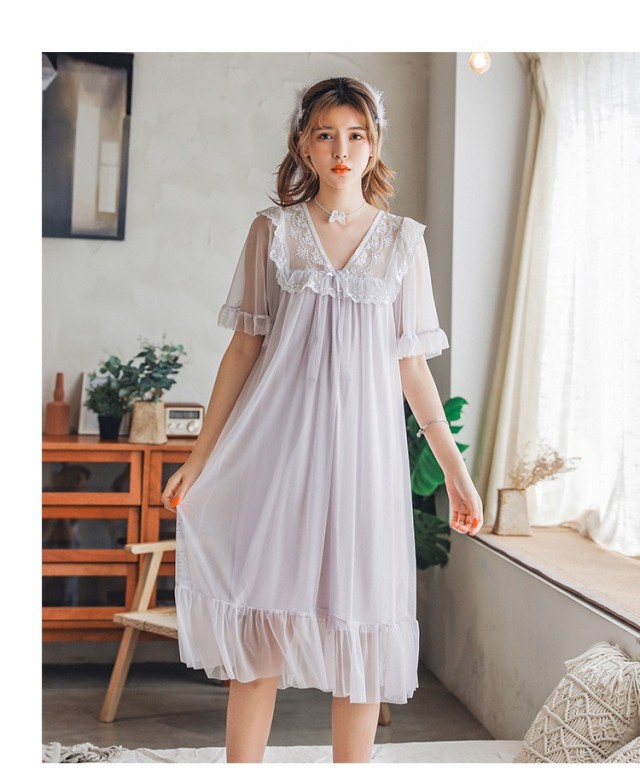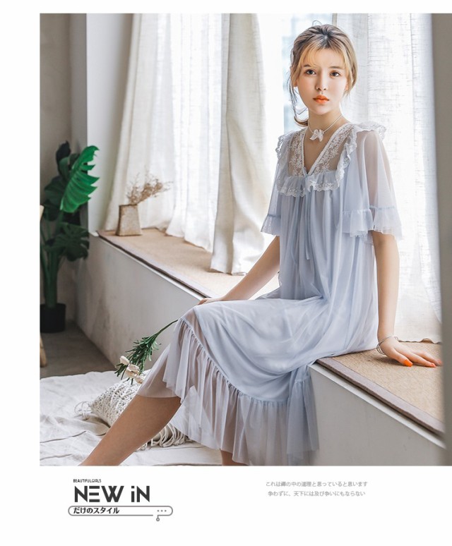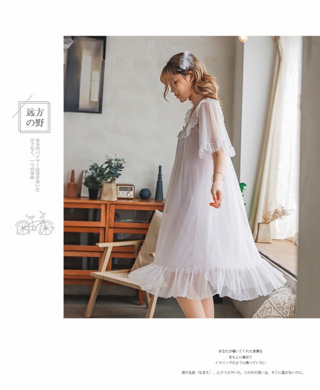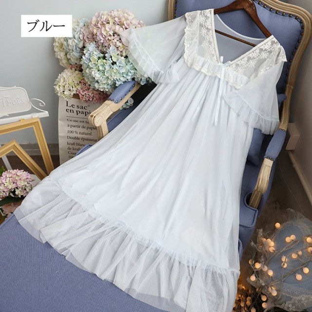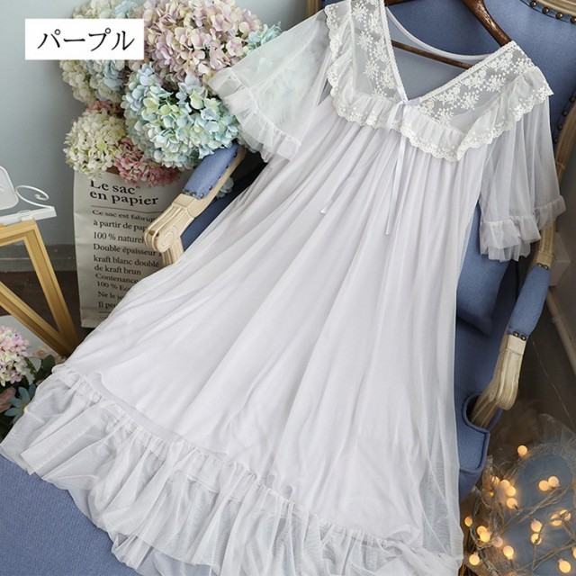 ネグリジェ 夏用 姫 ネグリジェ ワンピース ロング丈 レースネグリジェ シースルー 半袖 ネグリジェ パジャマ レディース 大人可愛い オシャレ新作 4色
