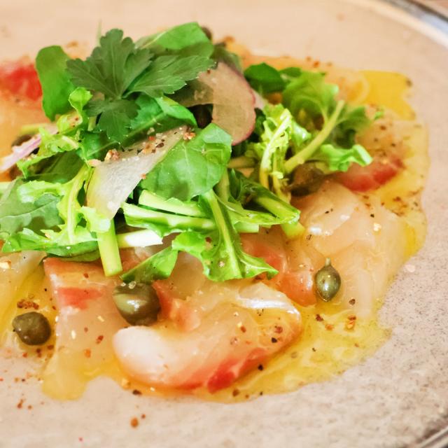 | おすすめレシピ ルッコラたっぷり!レモンペッパーカルパッチョ レモンペッパーのさわやかな香りが魚の旨味を引き立て、ルッコラの風味がアクセントに。手軽に作れるおしゃれなカルパッチョです。
