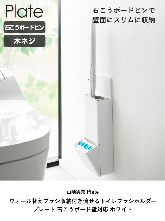 山崎実業 Plate ウォール替えブラシ収納付き流せるトイレブラシホルダー プレート 石こうボード壁対応 ホワイト ( 4903208100328 プレートシリーズ ブラシ収納付き 石こうボード壁 替えブラシ収納付き ブラシホルダー )
