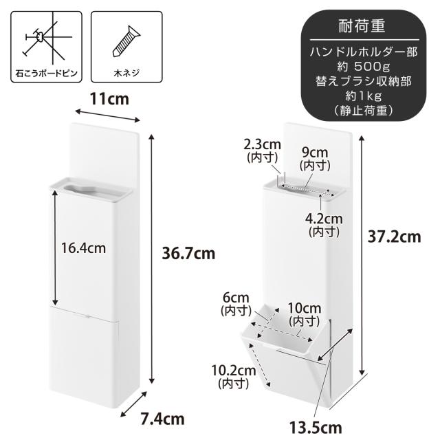 | 耐荷重 | ハンドルホルダー部:約 500g 替えブラシ収納部:約1kg(静止荷重) |
