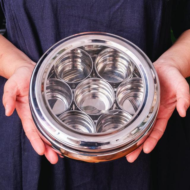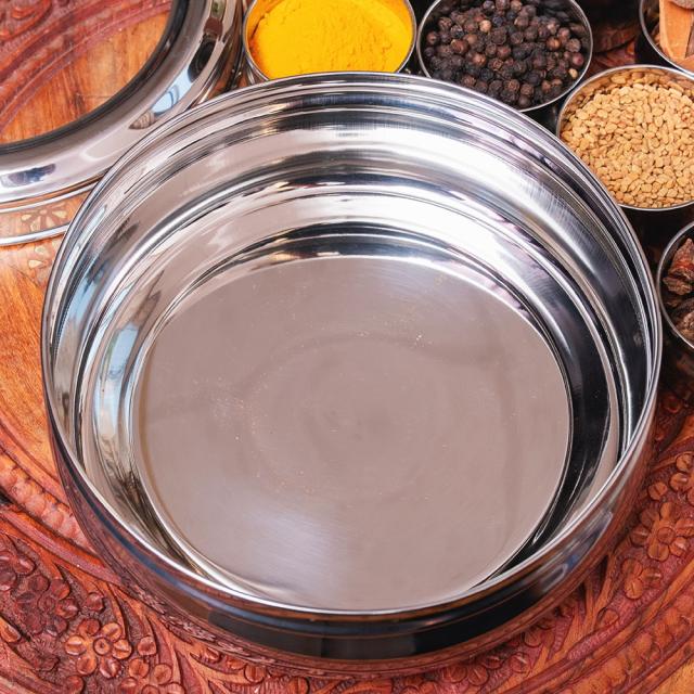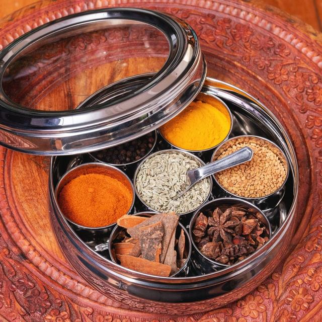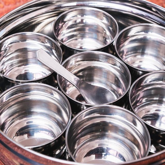7種類のスパイスを保管できるマサラケース。ステンレス製なのでにおいが移らず、お手入れも楽ちんです!よく使うスパイスを常備しておけば、お料理の強い味方となってくれるでしょう。スプーンが1つ付属しています。