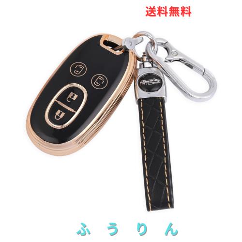 [YANMW] アルトキーケース適合スズキワゴンR スティングレーキーカバー ルークススマートキーケース ソリオ (ゴールデンブラック)