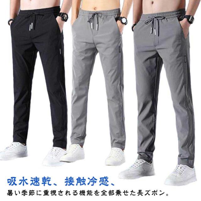 チノパン スキニーパンツ カジュアル ひんやり ゴルフパンツ 接触冷感 通気 メンズ 蒸れない 速乾 トレーニングパンツ ブラック グレー 涼しい 黒 ロングパンツ 夏 伸縮 ストレッチ 夏 長ズボン 美脚 スポーツ 無地 おしゃれ 夏物 春 薄手 送料無料