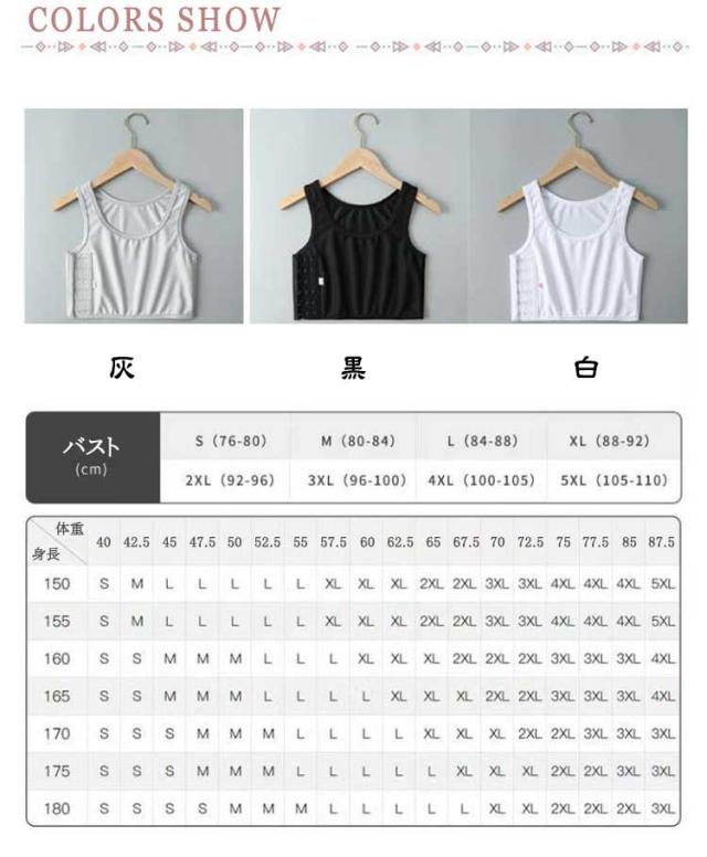 | 【着心地の良い素材】通気性の高いメッシュの使用と幅広く設計された肩の仕様で、着心地が良く長時間でも快適にご着用いただけます。 【胸を自然に小さく見せる】胸つぶしシャツがバストを自然に潰す事で美しいシルエットに見せます。 【3列ホックで調整】バストの抑え具合を3つのホックで調整が可能です。苦しくないよう好みの締め付け具合でご着用ください。 【こんな方におすすめ】胸が大きく太って見える、スポーツ時に揺れて痛い、自然にバストを小さく見せたい、コスプレ男装の衣装で使いたい。 | |