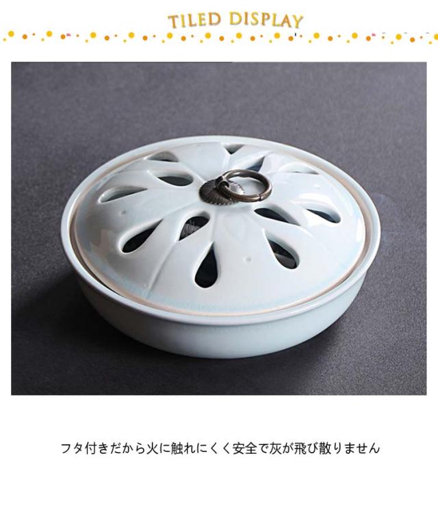 | フタ付き陶製蚊やり器 フタ付きだから火に触れにくく安全で灰が飛び散りません お部屋に置いても違和感のないシンプルなデザイン 蚊取り線香をマットの上に置いて使用して下さい | |