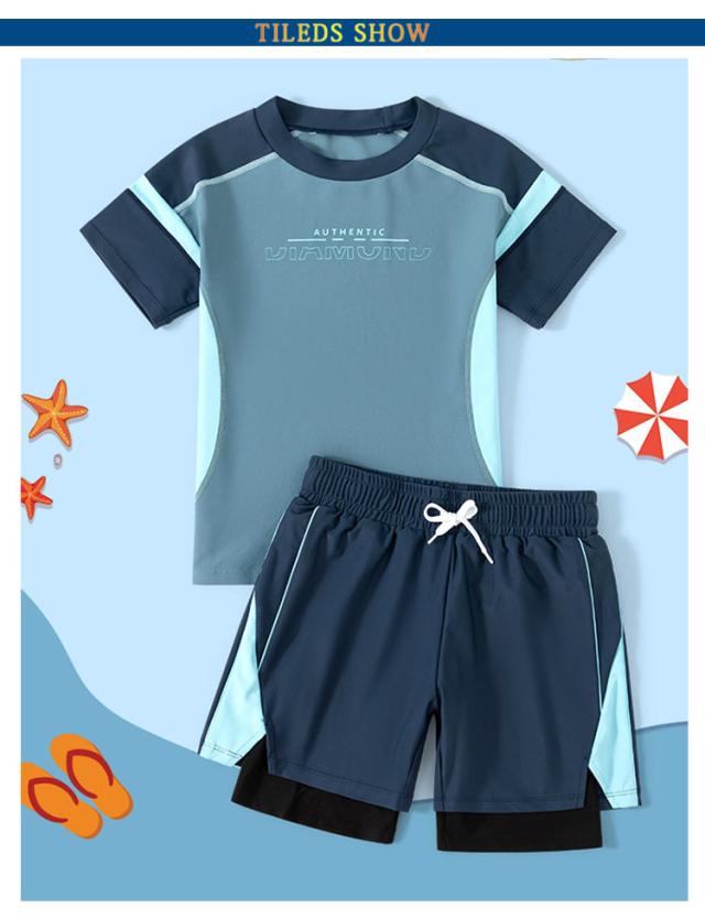 男の子 水着 ジュニア スイムウェア 上下セット キッズ みずぎ 水着 半袖 UVカット ボーイズ ジュニア 水着 小学生 中学生 高校生 スクール 水着 海 プール 温泉 スイムウェア カジュアル 韓国