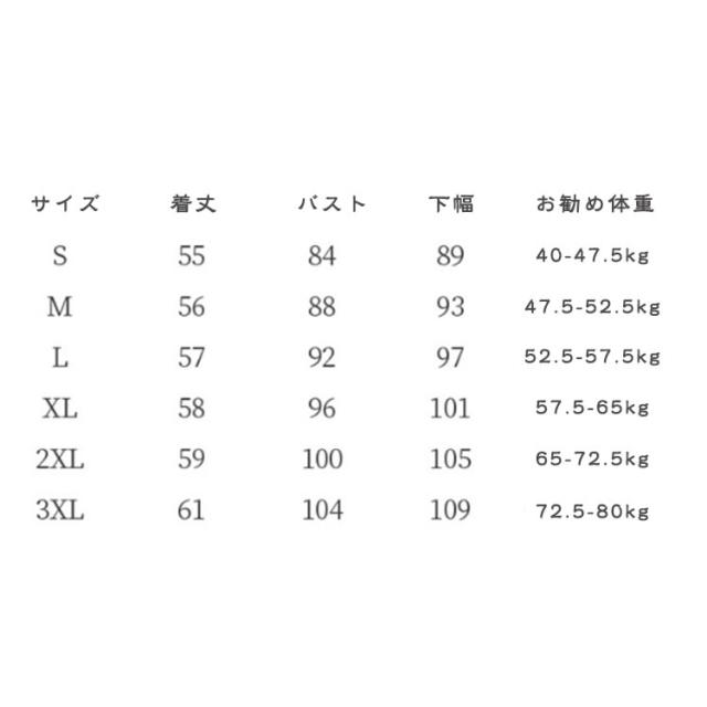 | サイズ | S M L XL 2L 3L |