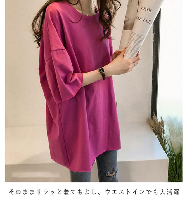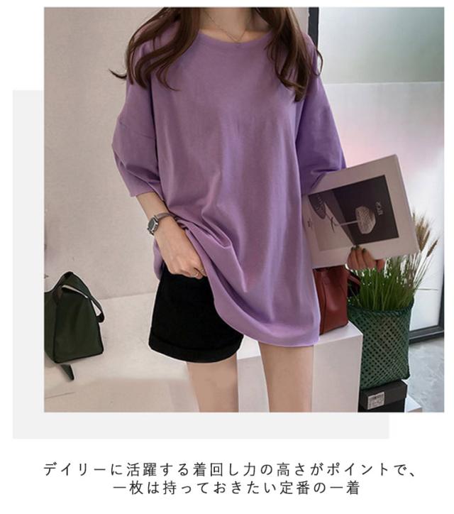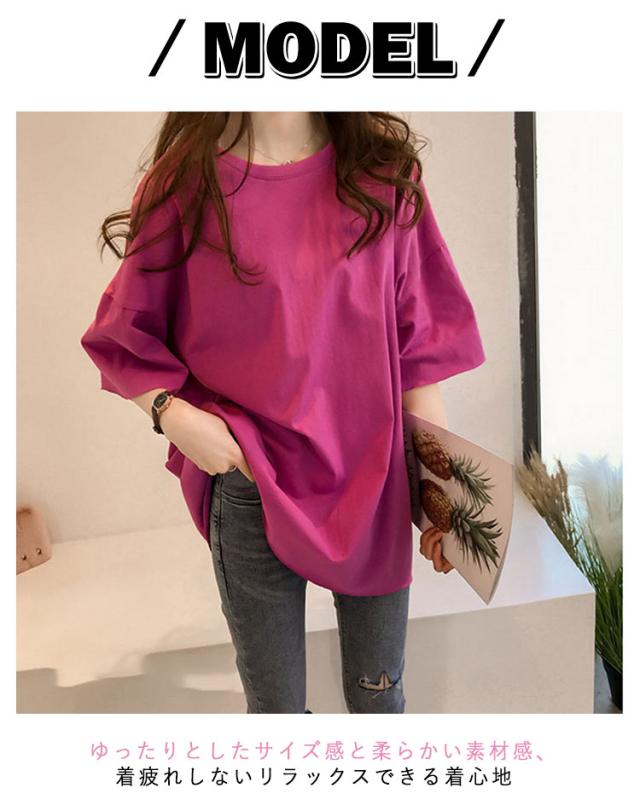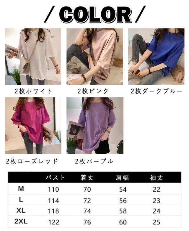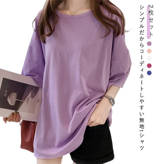 2枚セット tシャツ レディース Tシャツ 半袖 ビッグシルエット ゆるT 大きい サイズ ロングTシャツ 無地Tシャツ 5分袖 体型カバー 無地 トップス 春 夏 薄手 女性 プルオーバー シンプル 通勤 通学 送料無料