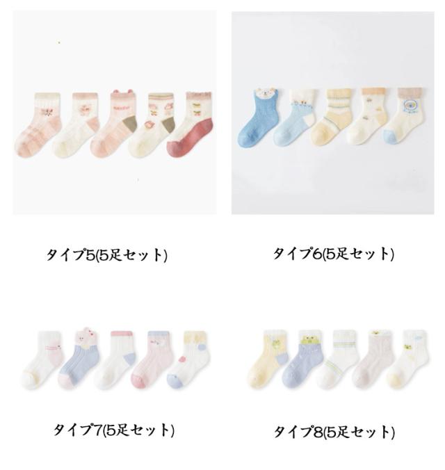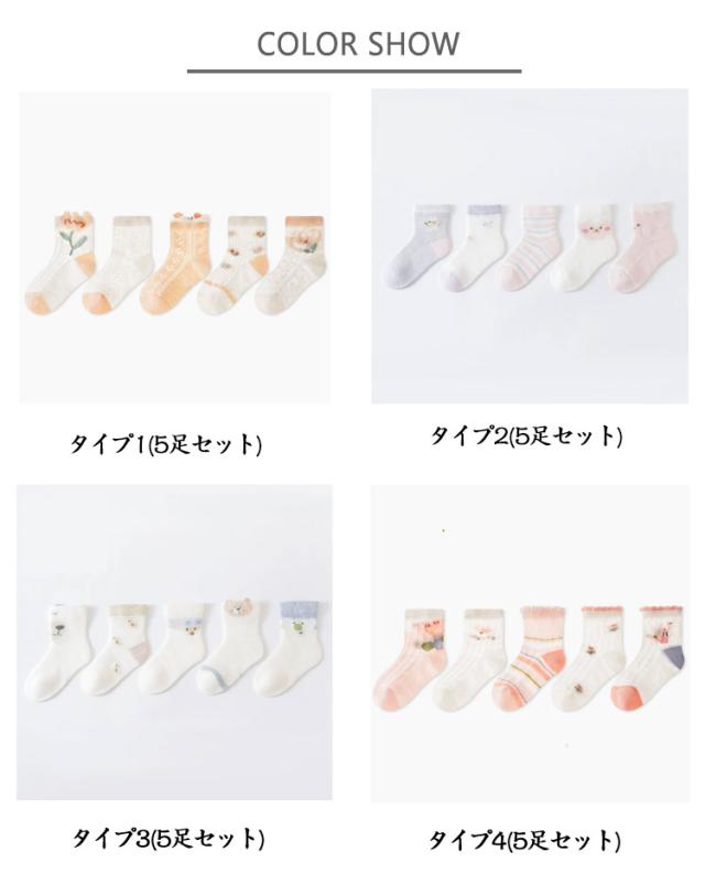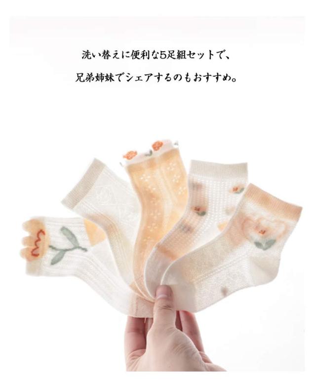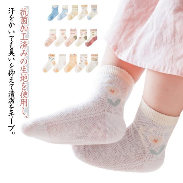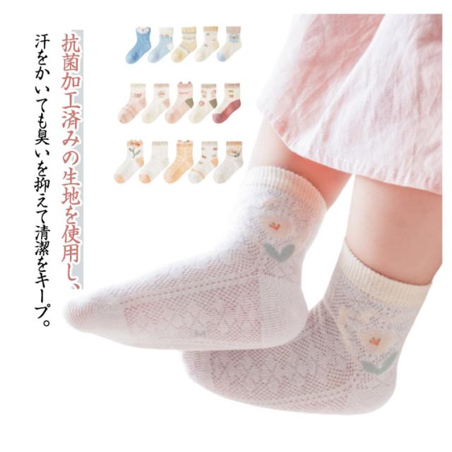 子供靴下 ソックス キッズ 女の子 男の子 メッシュ 夏用 薄手 通気性 抗菌 吸汗 幼児 春夏 快適 通園用 通学用 保育園 柔らかい軽量 無地 おしゃれ 5足セット 綿混ソックス デイリーソックス プレゼント 蒸れにくい