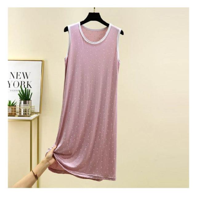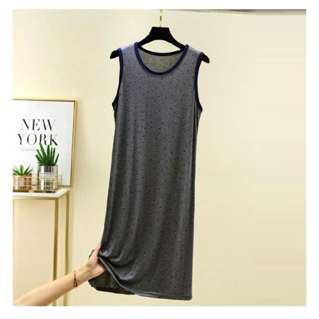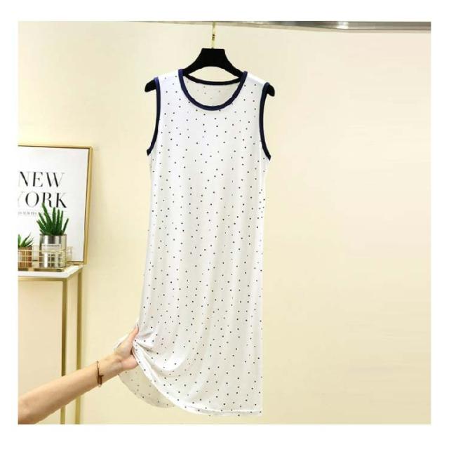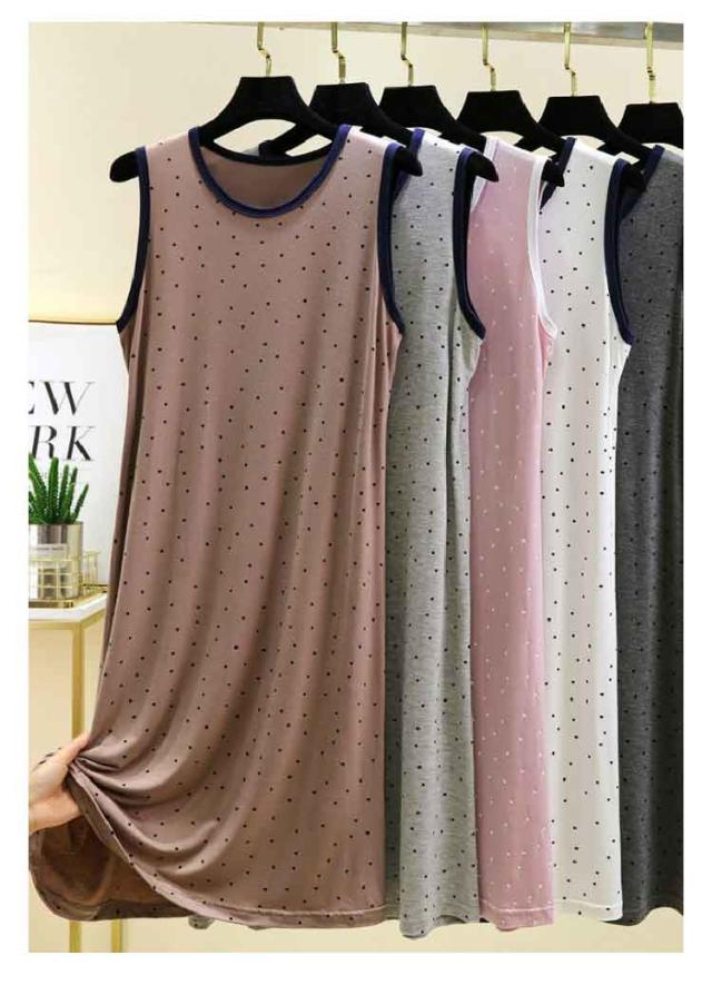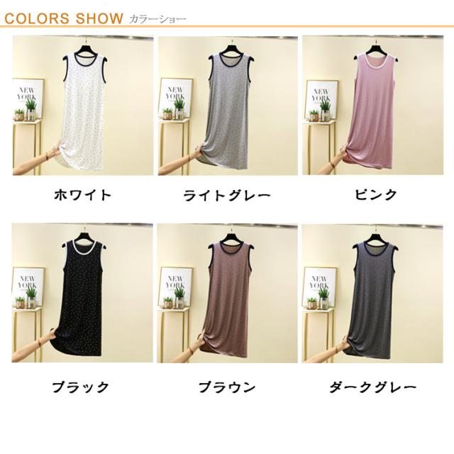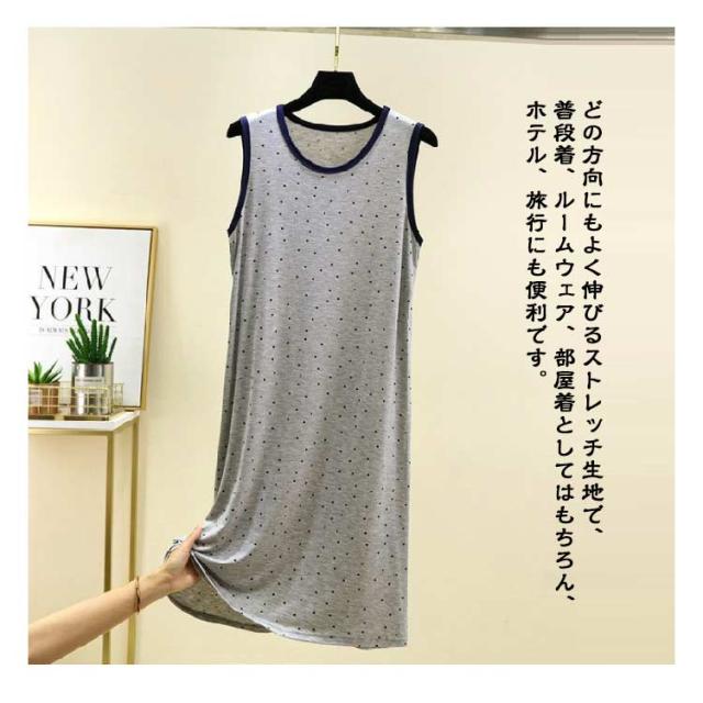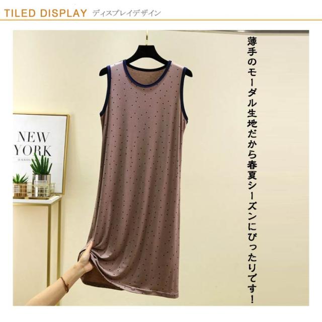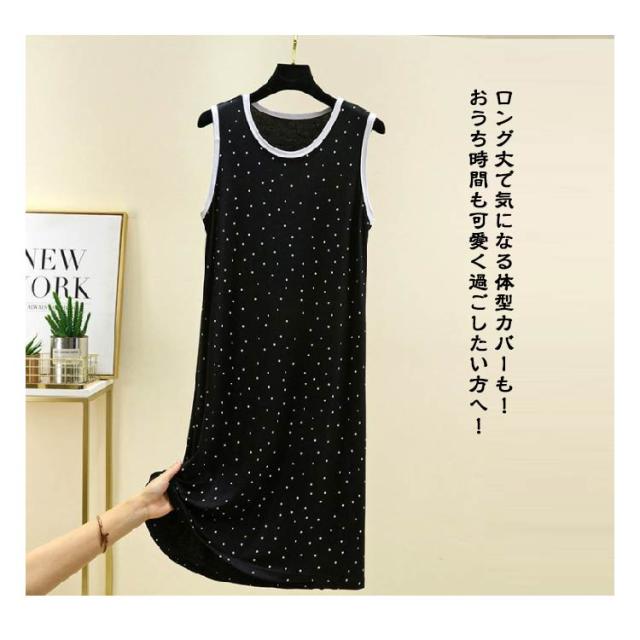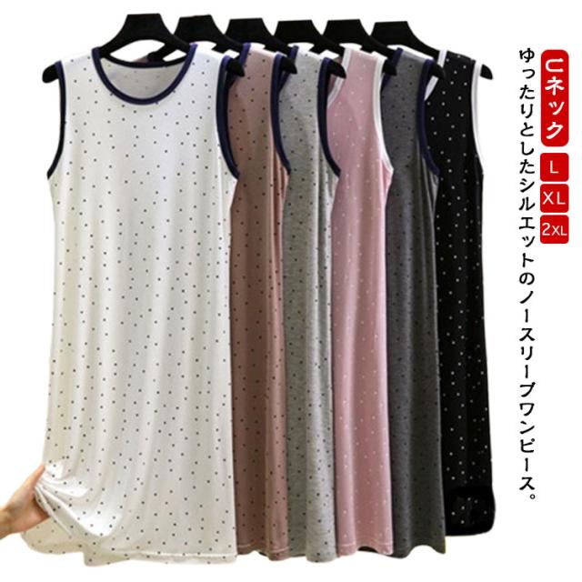 ワンピース ルームウェア レディース ノースリーブワンピース インナー 夏 薄手 モーダル ゆったり ロングワンピース モダール ドット柄 Uネック ロングTシャツ 袖なし 春夏 部屋着 パジャマ 大きいサイズ 体型カバー 送料無料