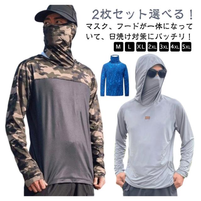 | M-5XL!2枚セット選べる!マスク、フードが一体になっていて、日焼け対策にバッチリ!ラッシュガード フィッシングウエア。紫外線が強く真夏には欠かせないUV対策パーカーです。 着るだけで紫外線対策。UVカットで春から夏にかけての日焼け対策に最適。 通気性優良かつ吸水速乾素材で夏場の汗ばむ季節に快適なサラリとした肌触りのラッシュガード 呼吸できるスポーツ生地で、汗も素早く発散し、吸湿性も高く蒸れにくく、快適に着用できます。擦り傷や、害虫などからも肌を保護。 折りたためばとてもコンパクトになるので持ち歩きにも便利。 自転車やバイク、ウォーキングやジョギング、運動会運動会など長時間外にいるときにおすすめです。 | |