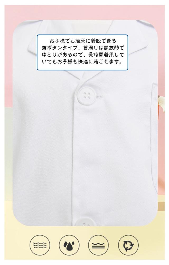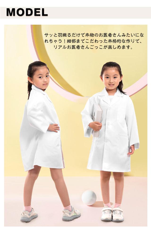 | 110-150cm!憧れのお医者さんになれる!サッと羽織るだけで本物のお医者さんみたいになれちゃう!細部までこだわった本格的な作りで、リアルお医者さんごっこが楽しめます。 上質なコットン素材を使用し、蒸れにくく着心地も抜群です。シンプルゆったりデザインなので、激しく動き回っても楽々♪丈夫で長くお使いいただけます。 お子様でも簡単に着脱できる前ボタンタイプ。首周りは開放的でゆとりがあるので、長時間着用していてもお子様も快適に過ごせます。 男の子も女の子も着用いただけます。サイズが豊富なので、お子様のジャストサイズを選べます。 | |